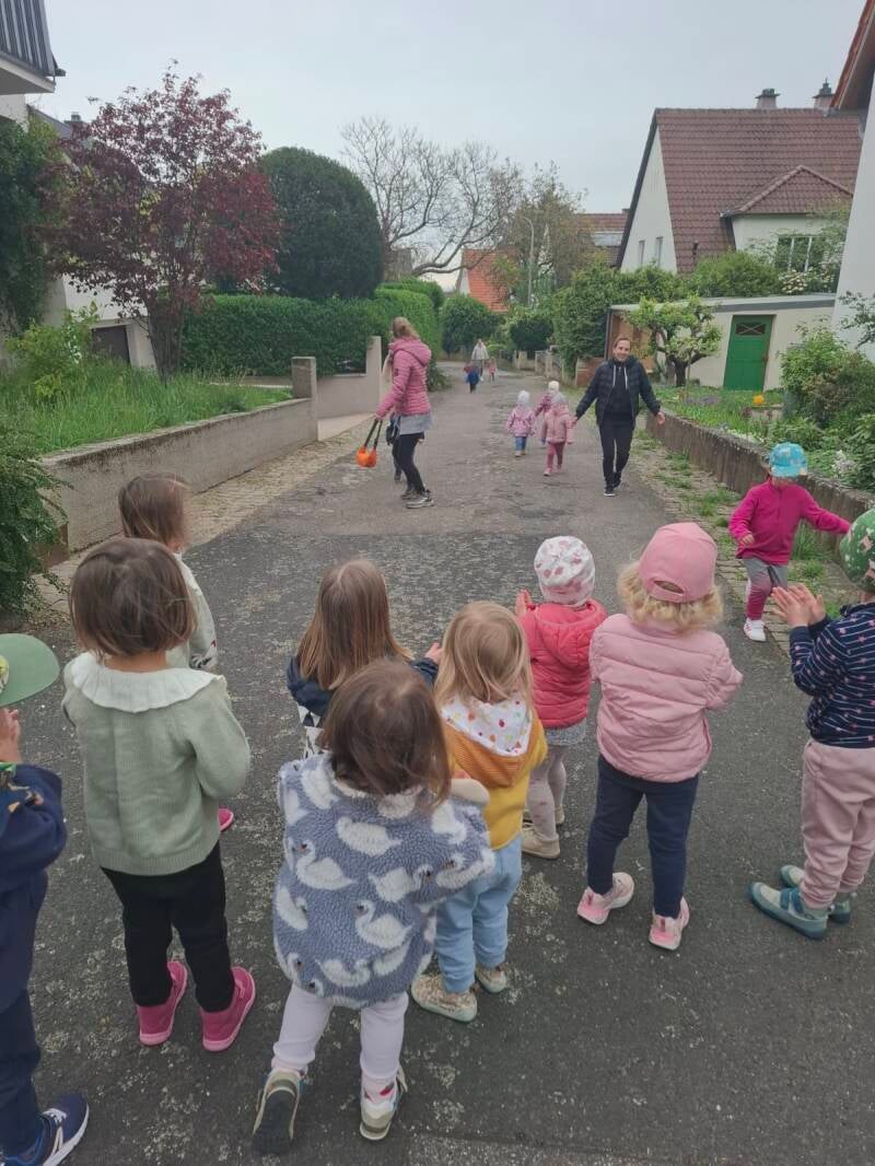 In drei Gruppen, 2-3 Jährige, 4-5 Jährige und 5-6 Jährige gehen wir joggen, machen Bewegungsspiele und verschiedene sportliche Übungen und alle haben dabei großen Spaß.