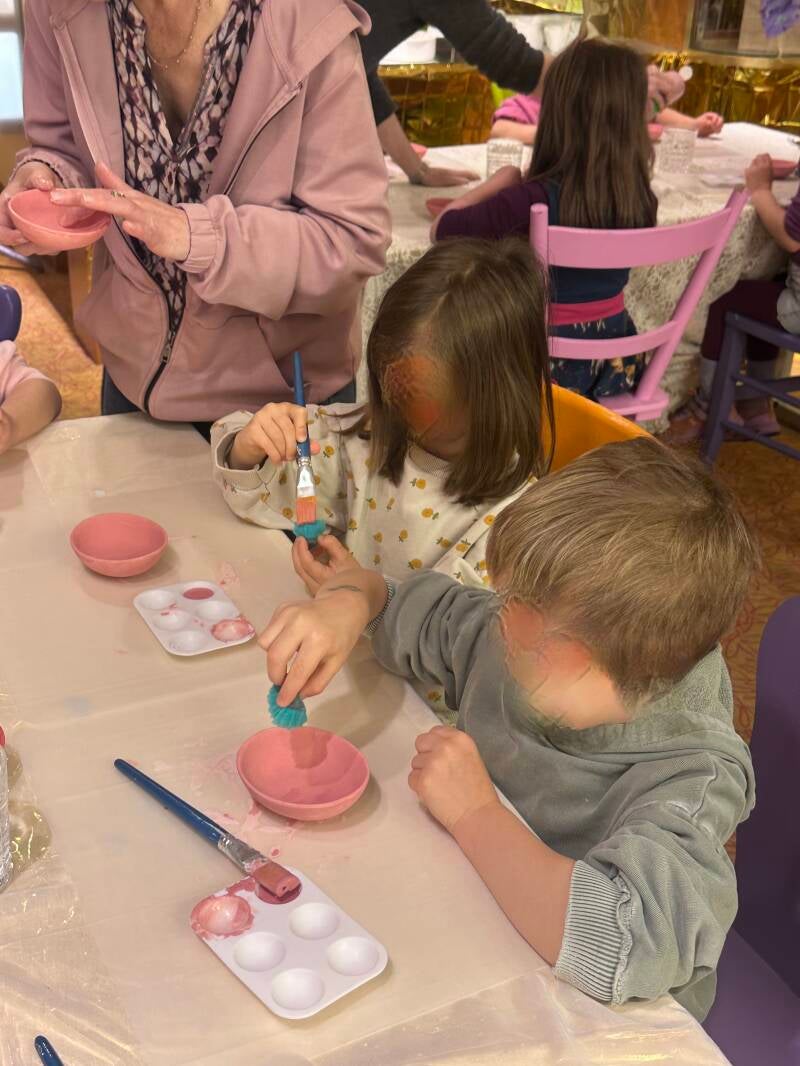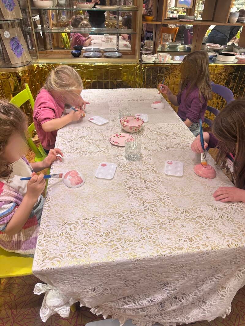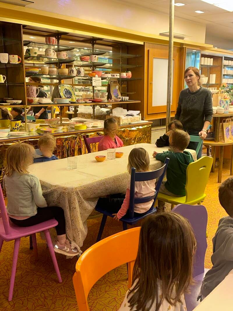 Gleich nach dem Frühstück ging es los in die Stadt in das zauberhafte Studio von Keramik Kolorit. Dort angekommen, durfte sich jeder einen Platz zum Malen aussuchen. Bettina und ihre Schwester Stephanie haben uns liebevoll die verschiedenen Arbeitsschritte erklärt und gezeigt und dann ging es auch schon los. Jedes Kind durfte eine eigene Erdbeerschale bemalen. Das hat wirklich sehr viel Spaß gemacht.