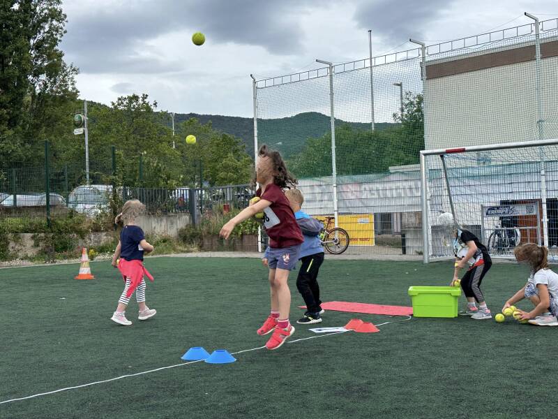 Unsere Krippenkinder hatten 3 eigene Disziplinen: Bobbycarrennen, Ballwurf und Slalomlauf.