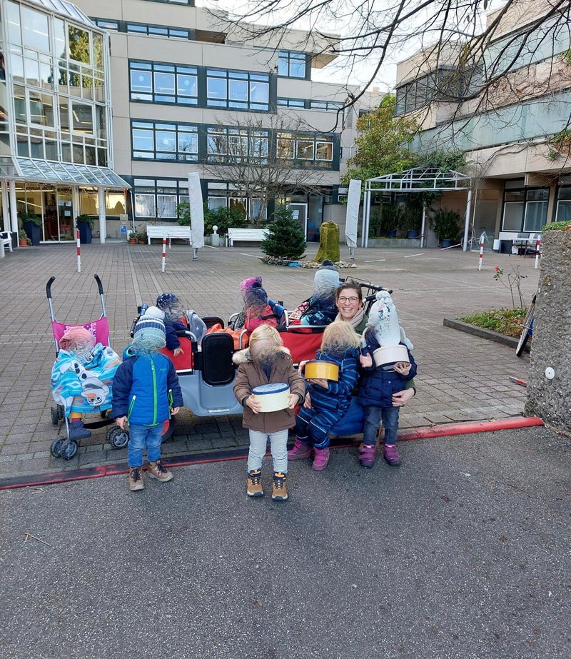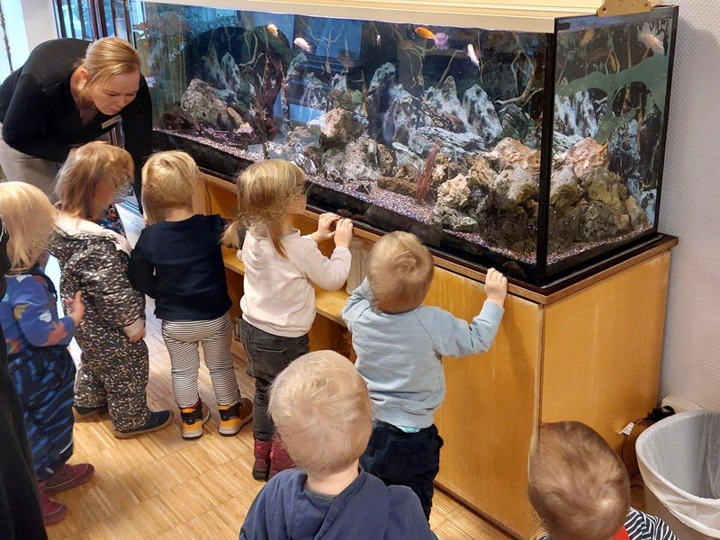 Unsere Gruppen besuchen regelmäßig das Paul Gerhard Haus. Hier sieht man unsere Sternchengruppe. Sie haben den alten Menschen selbst gebackene Plätzchen vorbei gebracht, mit ihnen Weihnachtslieder gesungen, Geschichten erzählt und das Aquarium bestaunt.