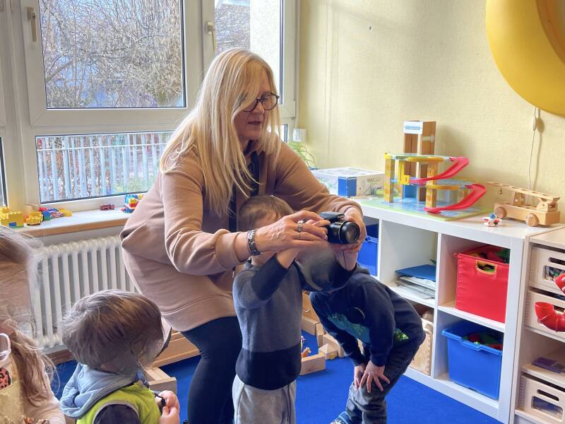Nach der großen Gesprächsrunde durften Kinder aus allen Gruppen durch die Kitaräume wandern und die Bereiche fotografieren, die sie gerne verändern würden.