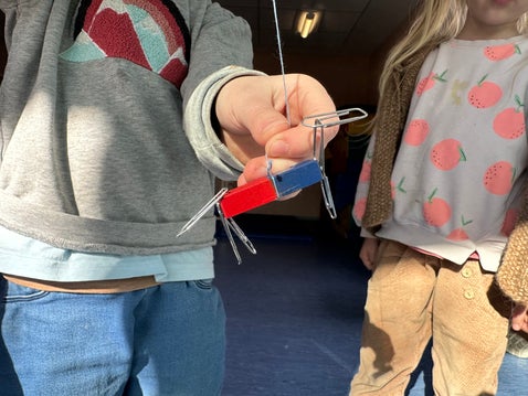Lucia hat uns viele verschiedene Magnete mitgebracht und wir haben geforscht, was alles im Raum magnetisch ist, wie stark Magnete sein können, wie sie sich zueinander verhalten und sogar wie man mit Magneten zaubern kann.